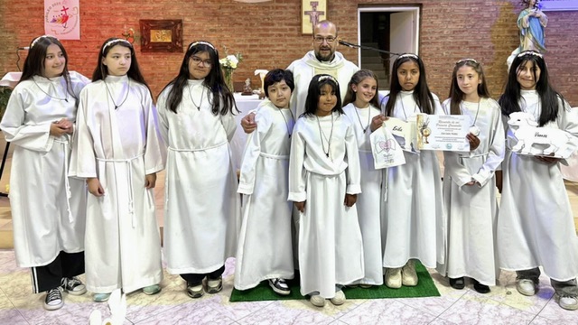 El padre de la Parroquia Nuestra Señora de Luján, Sergio Javier, destacó a El Valle Online que, después de dos años de catequesis, un total de ocho niñas y un niño recibieron a Jesús Sacramentado por primera vez.