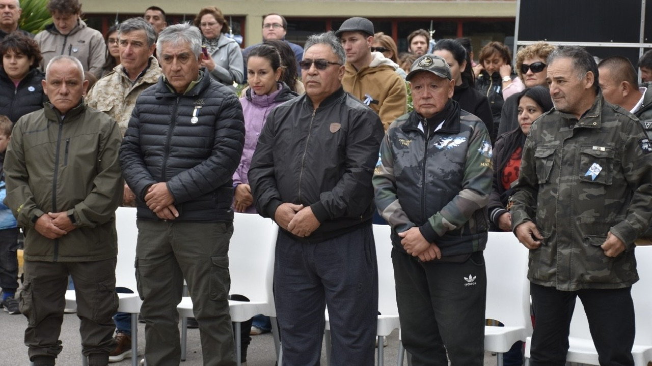 El momento más conmovedor del acto se vivió cuando el excombatiente Emilio “Miky” Jarme tomó la palabra, acompañado por sus hijos, Magalí y Juan Emilio, quienes leyeron un texto escrito por él, generando un instante de gran emoción entre los asistentes.