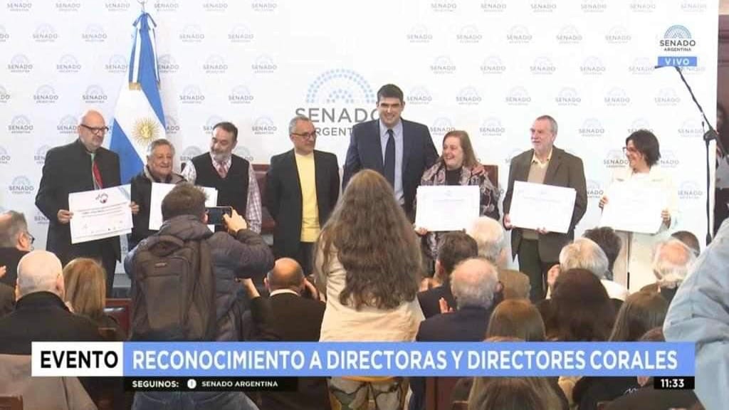 El director de coros Alejandro Garavano fue honrado por su destacada trayectoria artística y su invaluable contribución a la actividad coral nacional en una ceremonia celebrada en el Salón Azul.