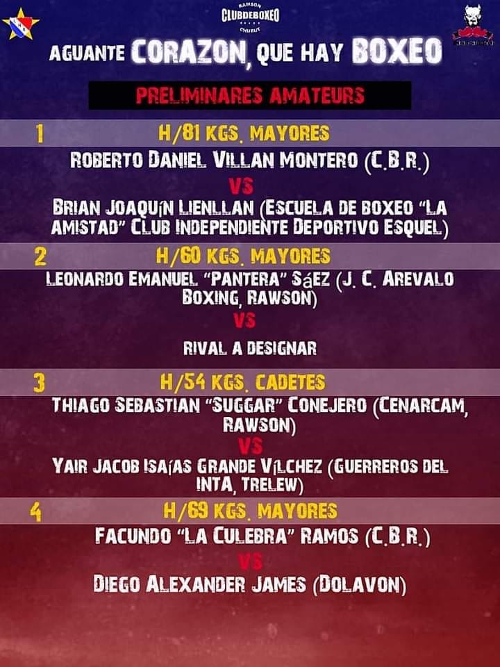 El encuentro es este viernes en el Gimnasio Héroes de Malvinas de Playa Unión. Diego Alexander se medirá en categoría amateur 69 kilos contra Facundo “La culebra” Ramos. Los combates iniciarán a las 21 horas.