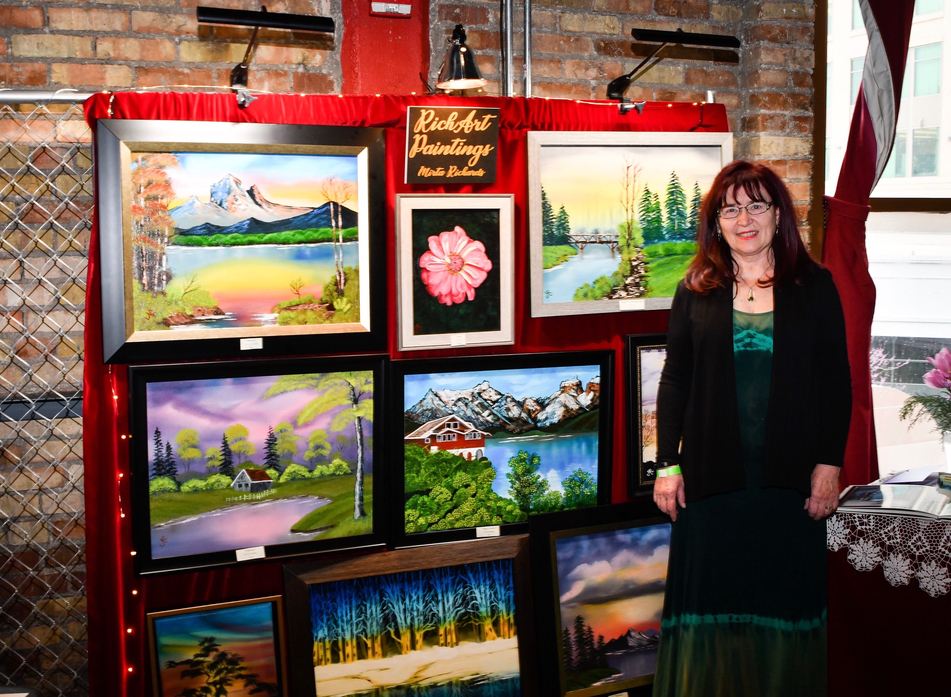 La artista oriunda de 28 de Julio que vive hace 30 años en Utah expuso sus trabajos originales al oleo en canvas donde se destacan océanos, cielos, montañas, árboles y pájaros.