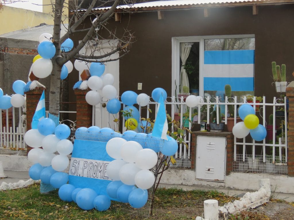 Además en varias casas familiares del Valle Inferior se pudo apreciar la decoración que se realizó con distintos elementos de los colores celeste y blanco. Hubo globos, dibujos y hasta collages para conmemorar este día histórico.