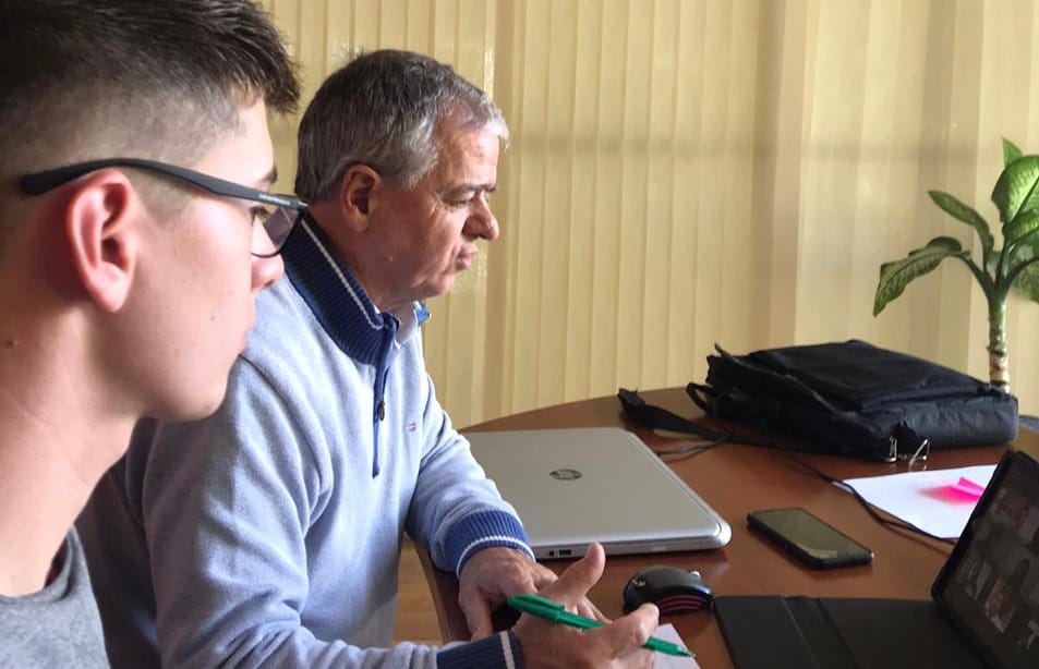 El responsable del área de Obras y Servicios Públicos de Dolavon, Luka Jones junto al ingeniero Carlos Hughes se reunió a través de una videoconferencia con técnicos del Ente Nacional de Obras Hídricas de Saneamiento (ENOHSA).