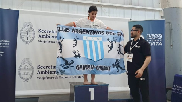 Briana Naomi Cristin Aguilar, representante de Gaiman en natación adaptada, es una joven este mes cumple los 14 años y encontró en la natación su cable a tierra. Comenzó a nadar a los 3 años, pero debió interrumpir su práctica por problemas de salud a causa de su condición de hipoacúsica y asmática. A los 10 años, regresó con determinación al club Argentinos del Sur, donde entrena tres veces por semana con el apoyo de su profesor Miguel Ñanco.