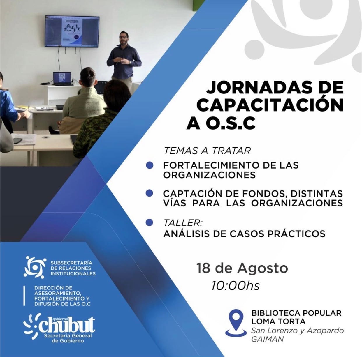 Este jueves en la Biblioteca Popular Loma Torta se brindará una jornada de capacitación para organizaciones de la sociedad civil (OSC). La misma está dirigida a todo tipo de asociaciones y clubes y también emprendedores y monotributistas, etc.