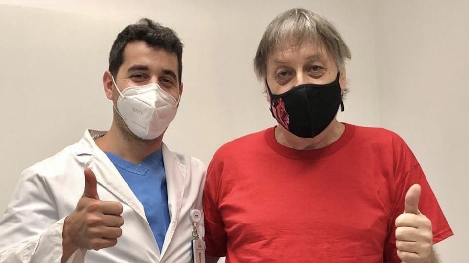 Carlitos con el alta de los profesionales del Hospital Británico