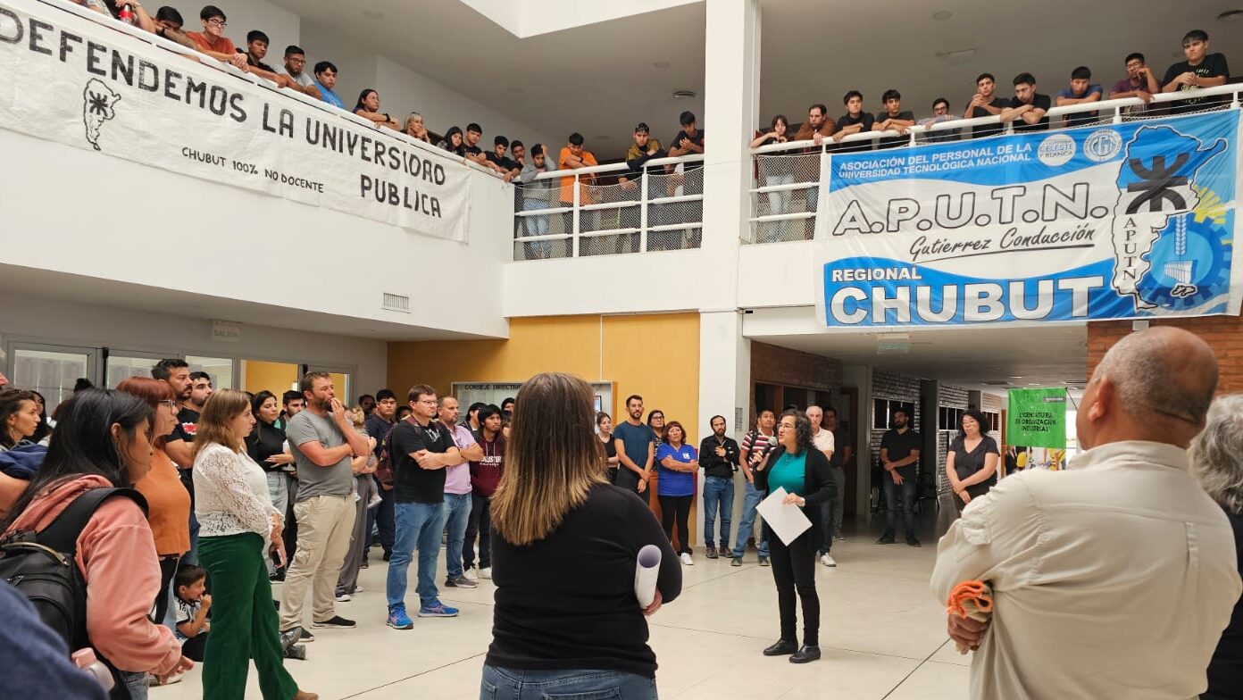 Más de doscientos miembros de la comunidad educativa, entre estudiantes, docentes, no-docentes, graduados/as, investigadores/as y el equipo de gestión, se reunieron para abordar la crítica situación financiera de la Universidad Tecnológica Nacional (UTN – FRCh) en Chubut.