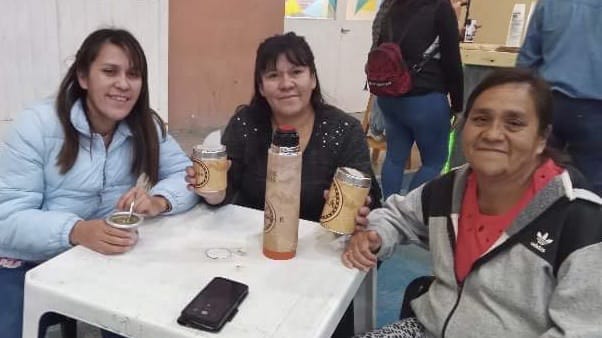 Nilda (derecha) junto a dos hermanas todas oriundas de Dolavon.