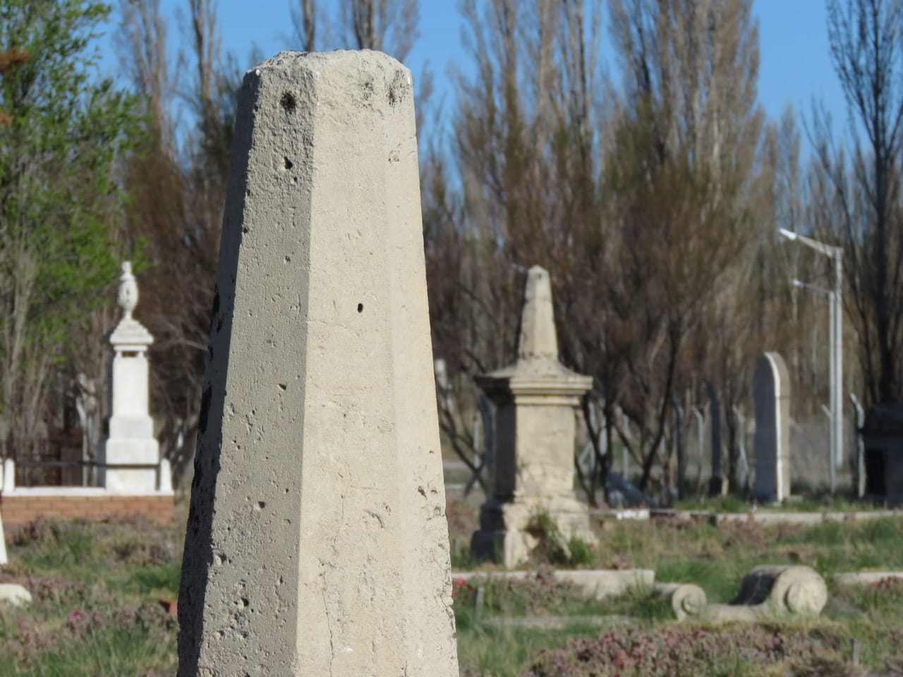En el recorrido por el cementerio se pueden observar seis obeliscos. El origen simbólico de estas figuras se remonta a Egipto y fueron ampliamente difundidos por los hermanos masones. Sabido es que entre los pioneros había varios integrantes de esa orden que en esta zona bregó por tres principios: la igualdad, la libertad y la fraternidad. Aunque resulta contrastante respecto de las cruces que suelen acompañar las tubas, no hay señales evidentes ni directas de la incidencia masónica, puesto a que la propia tradición de la hermandad, implica no dejar mensajes explícitos de presencia sino por medio de señales reconocibles solo entre los integrantes de esa órden.