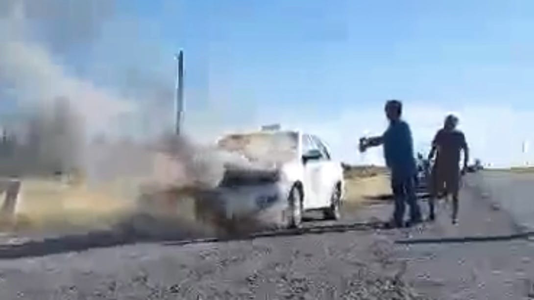 Según testigos que presenciaron la difícil situación para Pichi”, el tren delantero del automóvil fue afectado por fuego que habría iniciado de manera imprevista cuando el taxista circulaba de Gaiman hacia Trelew.