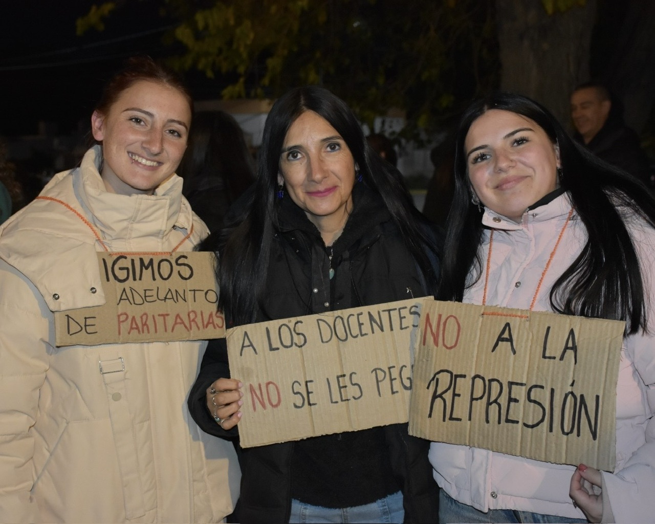 Docentes autoconvocados con antorchas volvieron a reclamar en Chubut