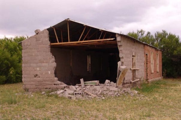 “El piso parecía de tierra pero al ingresar previo darnos un buen susto por la cantidad de pájaros que salieron volando de su interior nos dimos cuenta que el piso debajo de la tierra era de madera”, detalló y agregó que “removiendo con los pies la tierra, vimos las tablas; no podíamos creer que esa construcción se encontraba en ese estado”, explicó.