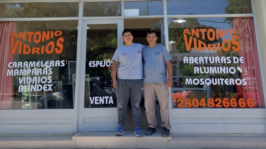 Gonzalo Joel, de apoco comenzó a sentir tanto afecto como su padre hacia este oficio y hoy con 25 años de edad, ve realizado su sueño, que es tener su propia vidriería en Dolavon. Está ubicada en la calle Raul B. Díaz 119.