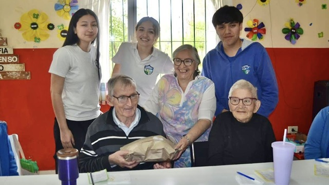 Este miércoles un grupo de alumnos del Colegio Camwy visitó a los adultos mayores del centro de día Amalia y Robin en el marco de una actividad solidaria.