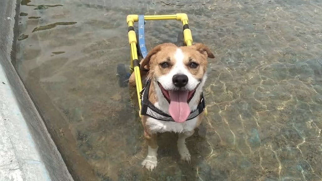 “Así que lo cargué de nuevo en el auto y con la mejor cara de perro mojado y entre llantos, lo llevé a casa y le dije a mi mamá que el cachorro no iba a volver a caminar. Ella ya tenía experiencia con perros discapacitados así que me enseñó a vaciarlo, ponerle pañales y otros cuidados”.