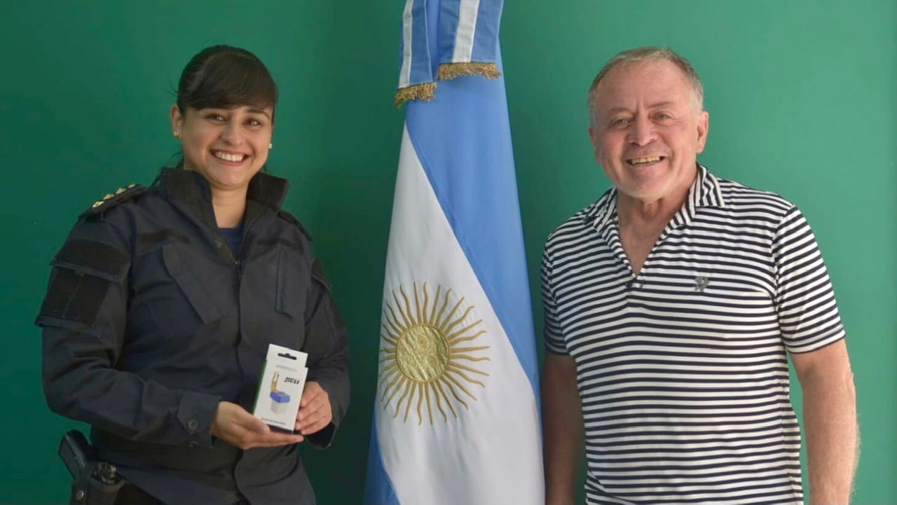 El presidente de la Cooperativa Eléctrica de Dolavon, Luis Meurzet, mantuvo un encuentro con la segunda jefa de la comisaría, oficial principal Hilen Dlugapolski y, respondiendo a un pedido de la Policía del Chubut, hizo entrega de una fotocélula para ser instalada en el patio de la seccional local.