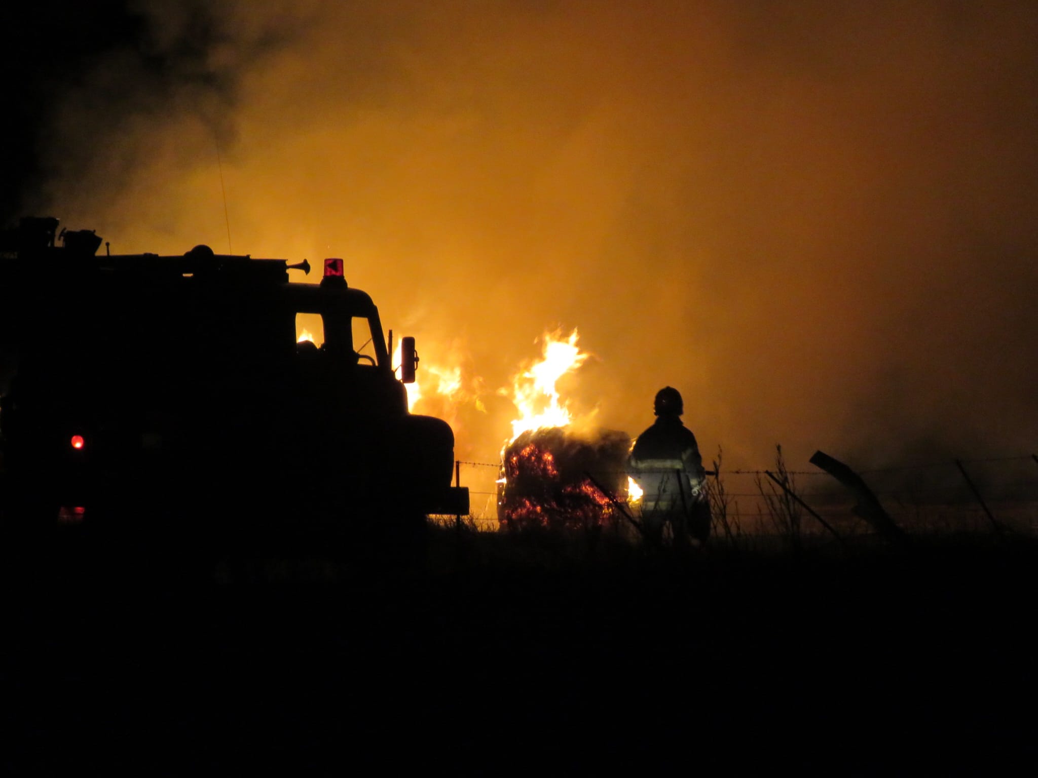 Este martes a la madrugada se registró un importante incendio de rollos de fardos en la zona rural de La Angostura.