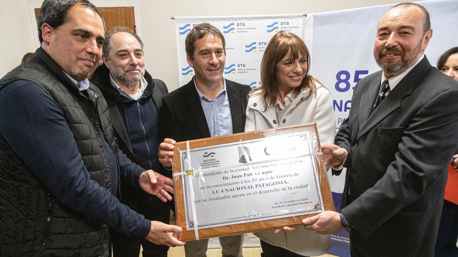 La ceremonia se desarrolló en horas de la tarde, con la presencia del secretario de Gobierno, Maximiliano Sampaoli; la presidenta de Radio y Televisión Argentina (RTA), Rosario Lufrano; el titular de Radio Nacional, Alejandro Pont Lezica; el director de LU4, Saúl Gherscovici; y la rectora de la Universidad Nacional de la Patagonia San Juan Bosco (UNPSJB), Lidia Blanco.