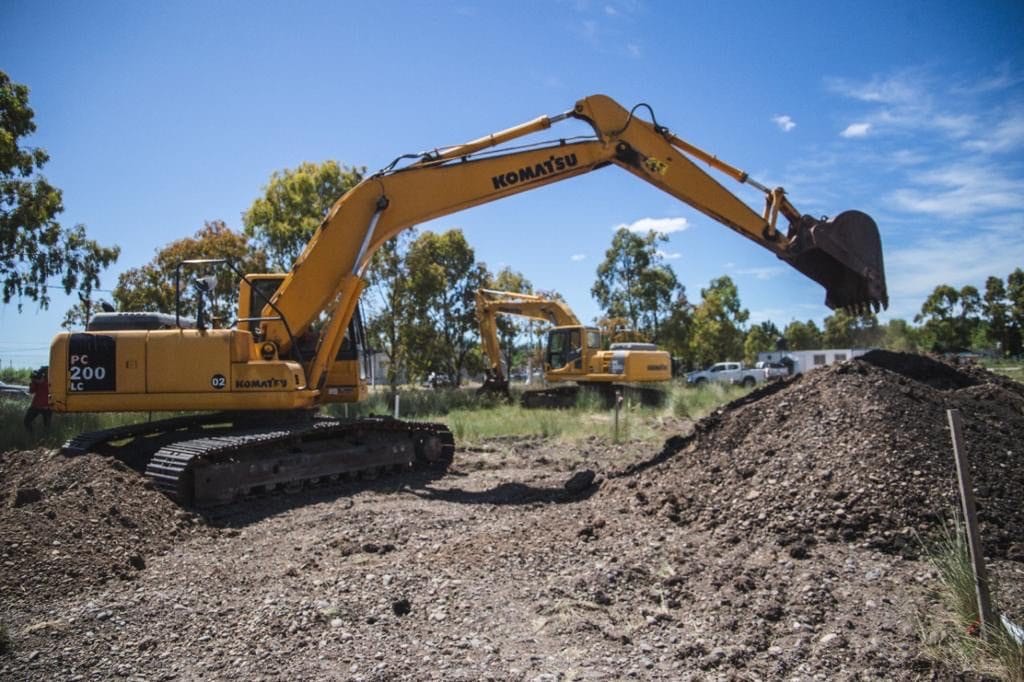 Las máquinas en el predio de la Planta Potabilizadora de Rawson.