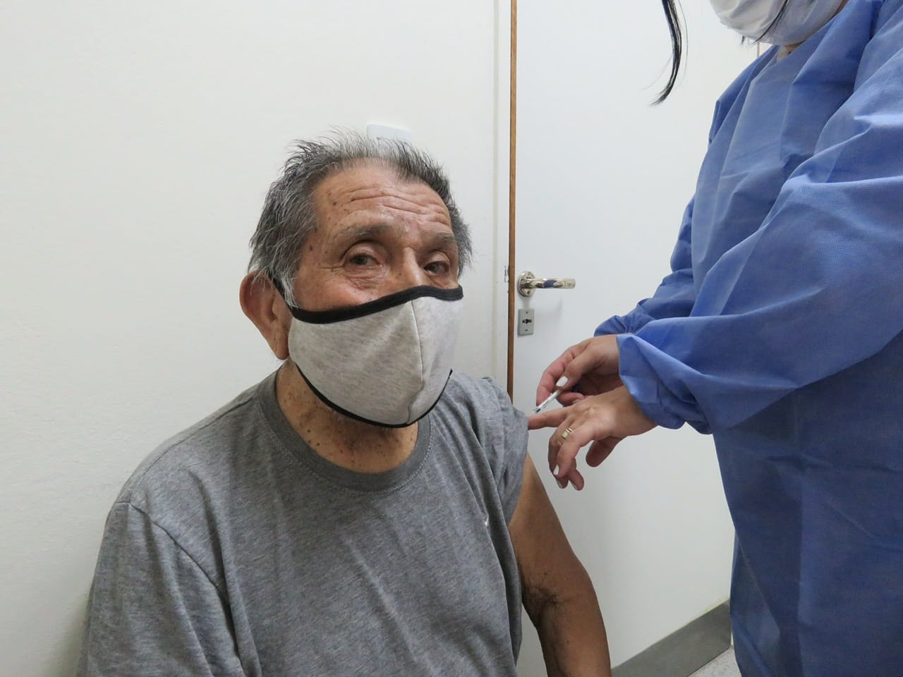 Este martes el Hospital Rural John Evans realizó la inmunización de 30 adultos mayores y seis trabajadores del equipo de salud contra el Coronavirus (Covid 19).