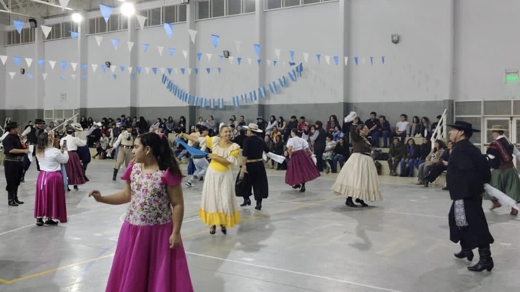 Durante la jornada, Gabriel Restucha, integrante de la comunidad educativa, leyó unas sentidas palabras alusivas a la fecha. Estas palabras conectaron a los asistentes con el significado histórico del 25 de Mayo. Además, la música y la danza fueron protagonistas centrales. Los ballets “La Querencia” y “El Coirón” ofrecieron destacadas presentaciones que llenaron de color y tradición el salón. De igual forma, Mariela Peña y Javier Ampuero, docentes del Profesorado de Gales (Escuela 801), demostraron su arte con dos números de baile que recibieron el aplauso del público. Finalmente, el cierre musical estuvo a cargo de Pedro (padre), Luis y Diego (hijos), quienes interpretaron diversas canciones, añadiendo un toque juvenil al repertorio patrio.