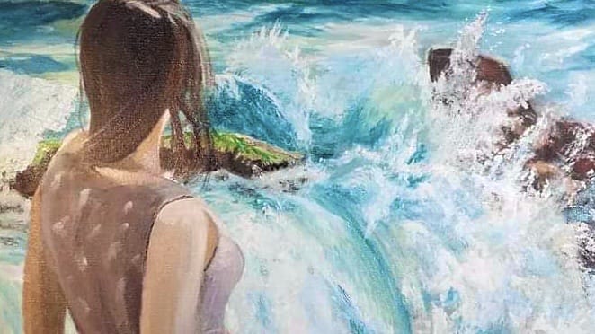 En cuanto a su obra, Claudia Bau, refirió que se llama Una chica Volegov en el sur. “Vladimir Volegov es un pintor ruso que pinta a mujeres de una manera muy fina, suave, muy delicada. Entonces yo pinté una chica Volegov en un paisaje marino del sur argentino. El cuadro retrata a una chica Volegov colocado en un paisaje imaginario mio en un entorno sureño”, detalló Bau.