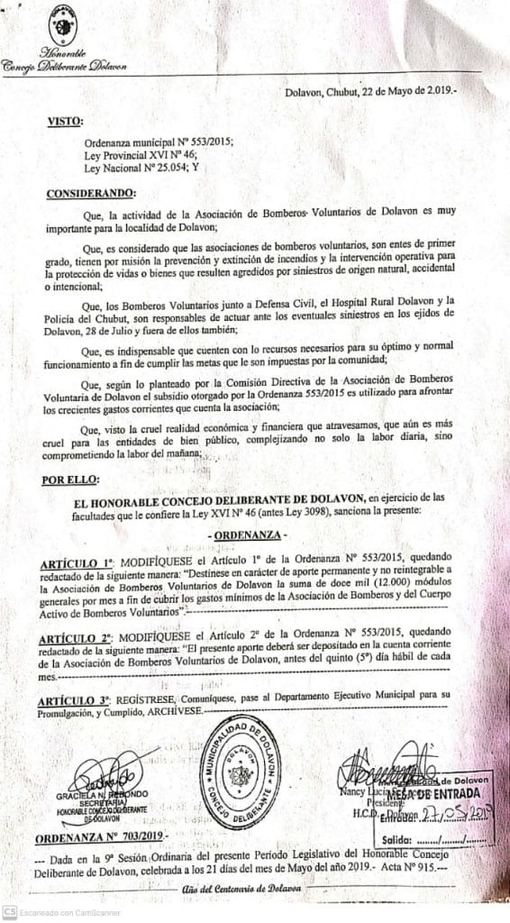 Por otra parte el Presidente de Bomberos de Dolavon valoró “la predisposición y el compromiso del intendente para regularizar la deuda que tiene el municipio desde el año pasado con la asociación”.