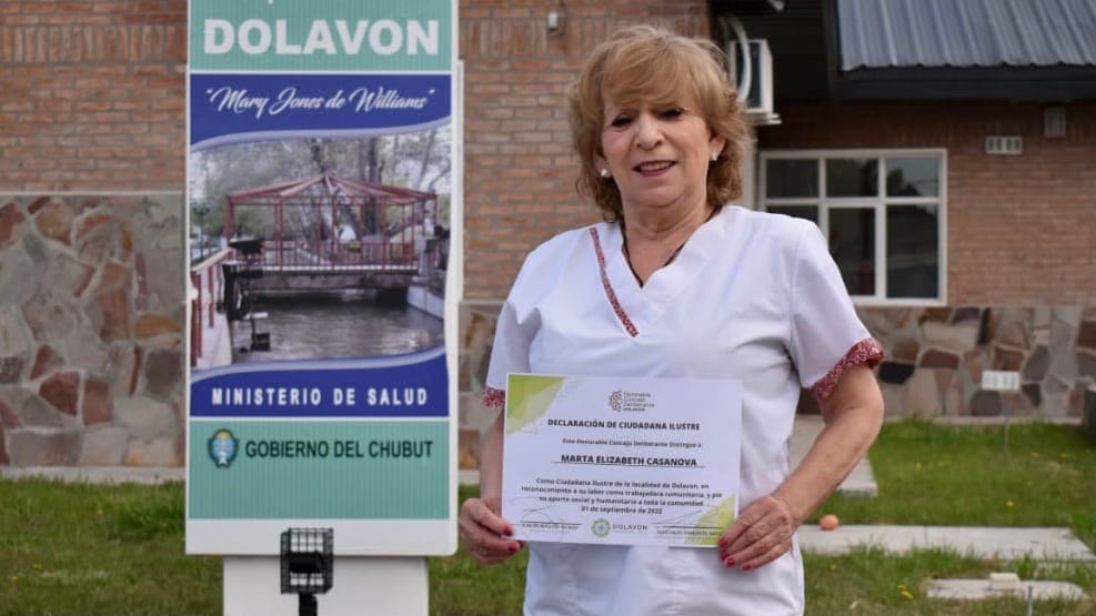 El pasado 1 de septiembre el Honorable Concejo Deliberante de Dolavon reconoció a Marta Elizabeth Casanova por 34 años de servicio y por el aporte hacia la comunidad junto al personal del Hospital Rural de Dolavon.