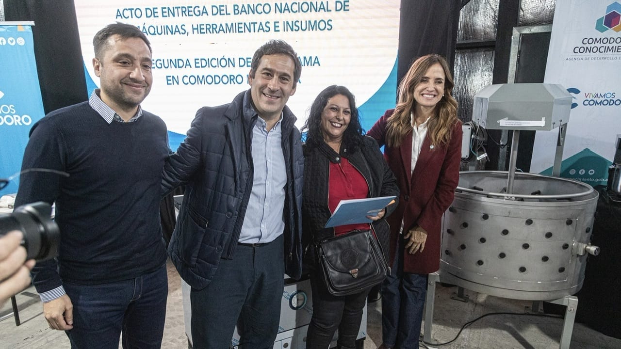 Por su parte, desde Comodoro Conocimiento, Nicolás Caridi repasó la entrega que se realizó en 2021 con el mismo programa de Banco de Herramientas. “Nos llena de orgullo que en los dos galpones lindantes hemos encontrado a muchas de estas personas que han sido beneficiarios hace dos años atrás, elaborando, produciendo y haciendo su fuente principal de trabajo, que ese es el objetivo de este programa, que reciban una herramienta para empezar un nuevo emprendimiento o bien para innovarlo”.