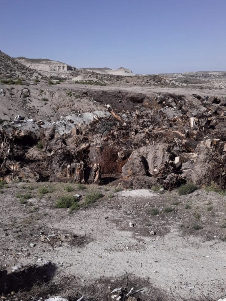 Una familia se comunicó a El Valle Online para expresar “una queja pública” por el agua de cloacas que arrojan los camiones atmosféricos sobre la leña que se ubica en un sector del Basural Municipal de Gaiman.