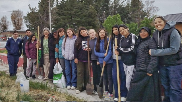 Un grupo de jóvenes de la Capilla San Juan Bosco realizaron una importante actividad de reforestación en el Hospital Rural de Dolavon, como parte de su preparación para la ceremonia de Confirmación.