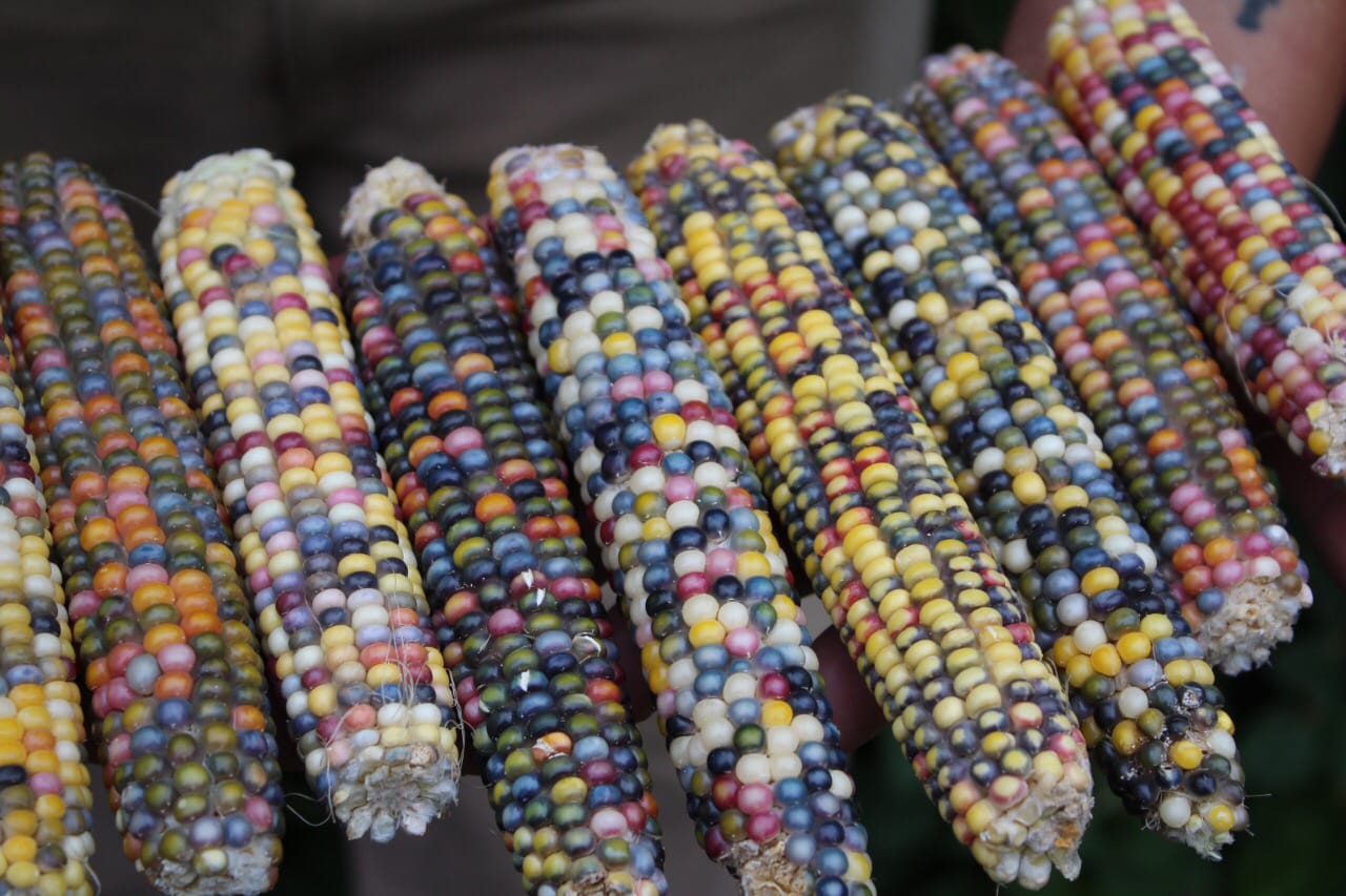 El choclo más bello y el girasol más grande son de Pablo Monsalve. Es el primer productor de Bethesta en cosechar maíces Glass Gem (gema de vidrio o cristal). Los más lindos del mundo porque sus granos tienen los colores del arcoíris.