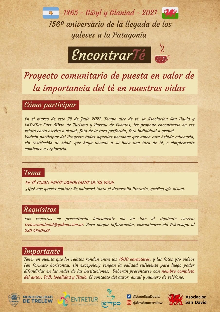 En el marco del 156 aniversario de la llegada de los colonos galeses la Asociación San David invita a participar de EncontrarTe.