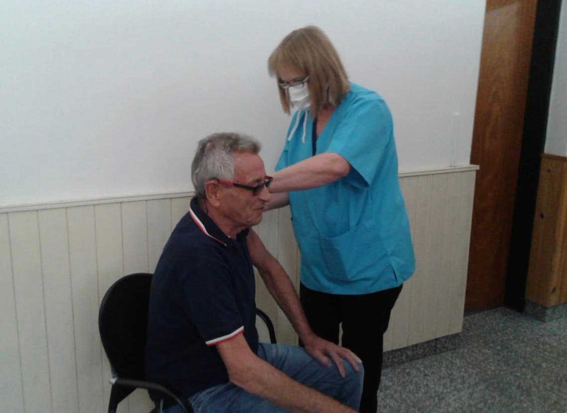 Esther Davies desde la oficina de Juan C. Evans 179 hizo la convocatoria para acceder al beneficio y la encargada de aplicar con éxito las inyecciones fue la enfermera Patricia Evans.