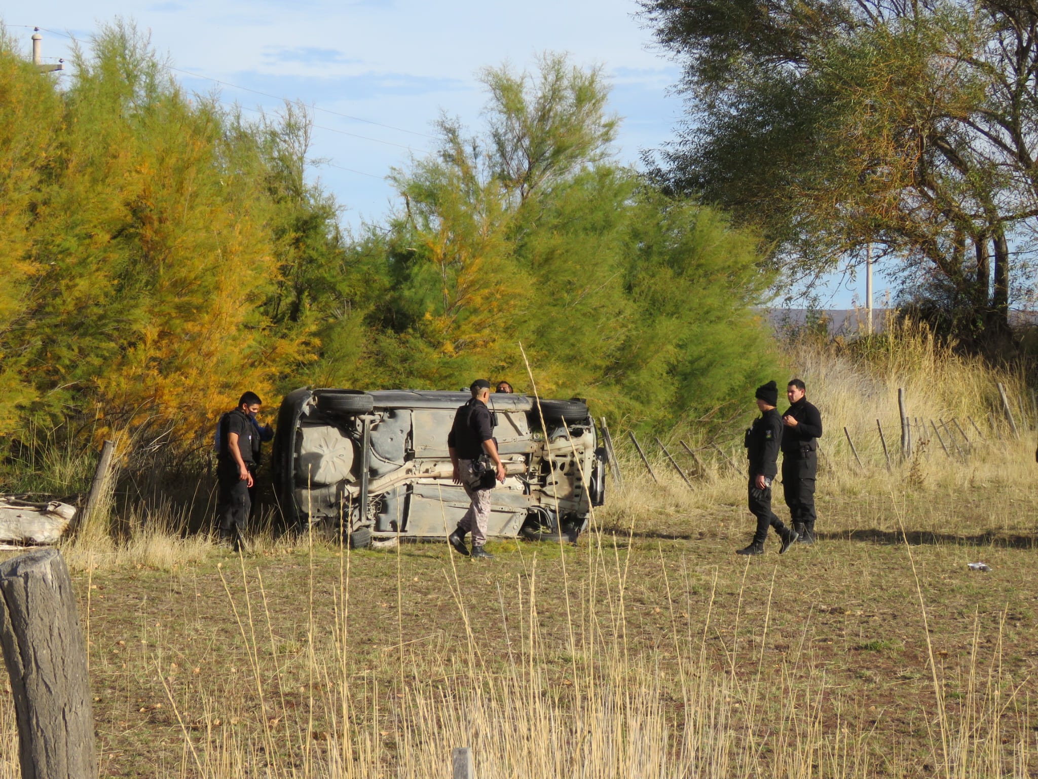 El auto sufrió daños ya qué pasó por arriba de tamariscales antes de quedar volcado en el interior de la chacra.