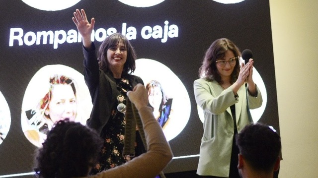 La recepción comenzó entre charlas y reencuentros, hasta que un breve anuncio sumió la sala en oscuridad. La introducción del podcast sonó y los aplausos estallaron… pero fueron interrumpidos por una sorpresa: la voz de 12 mujeres del Coro Raigué, que, de entre el público, entonaron Stand by Me con una fuerza y emoción que dejó lágrimas contenidas en más de un rostro.