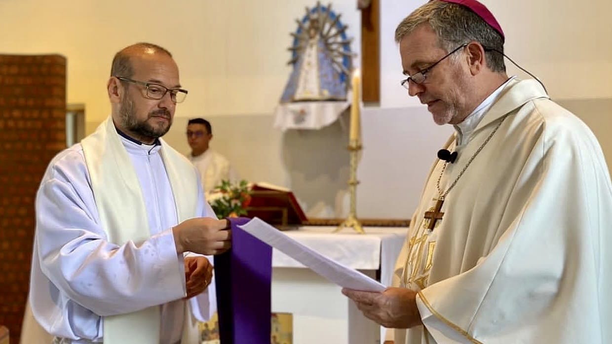 El nuevo representante de la iglesia católica es oriundo de Chaco y llegó a la diócesis de Trelew en marzo del año 2017. Allí estuvo atendiendo junto con el padre Miguel Astudillo, la periferia de las parroquias San Pedro y San Pablo, 8 de diciembre y el barrio Santa Catalina. Luego, tras el fallecimiento del padre Miguel se trasladó a Guadalupe y a María Auxiliadora, donde fue administrador parroquial hasta el domingo pasado.