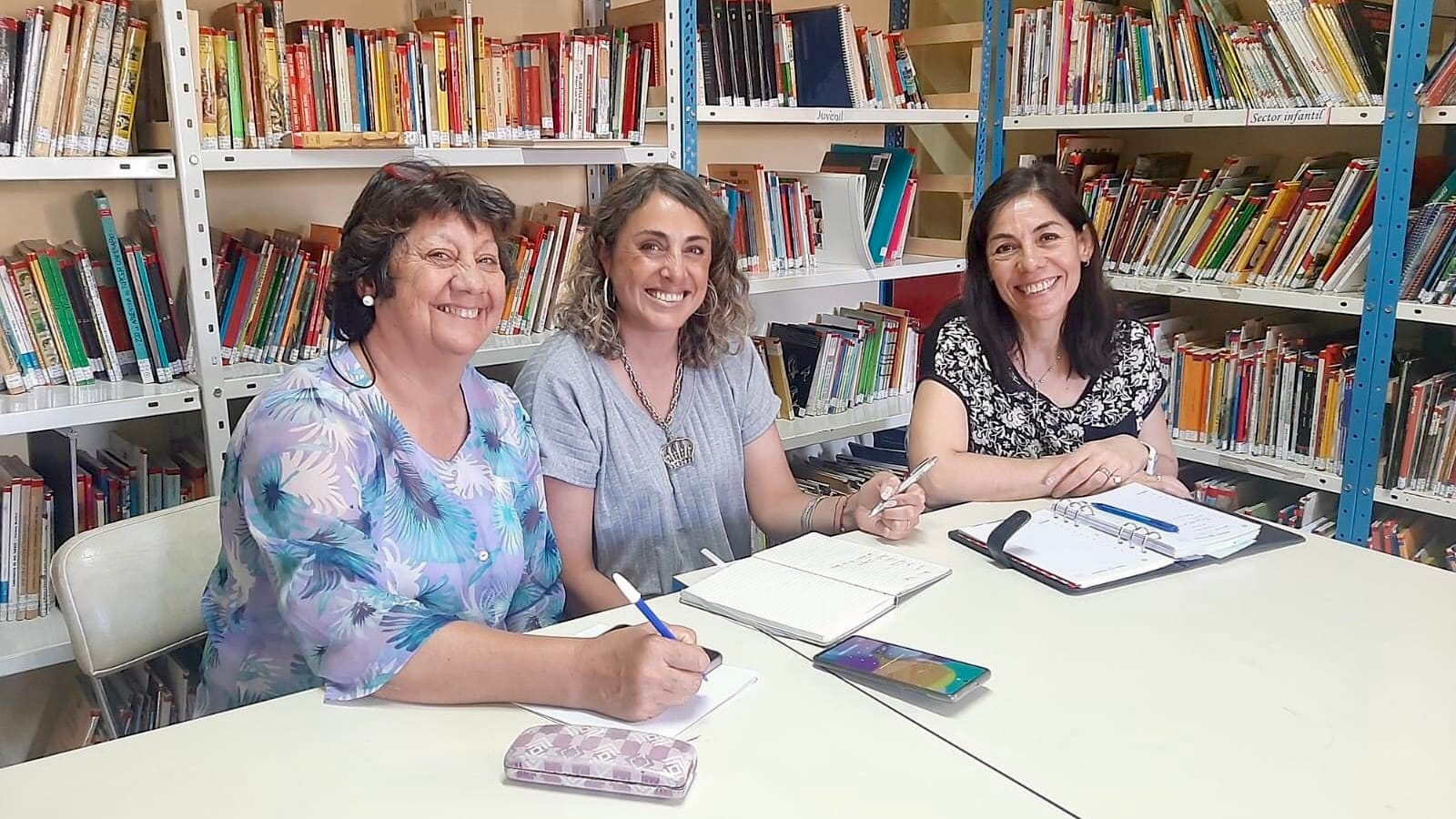 La Presidenta de la Biblioteca Ricardo Jones Berwyn, Gladys Landaeta, se reunió con la Coordinadora General del Centro de Recursos para el Aprendizaje y la Investigación (CRAI), Irene Beatriz Gerez y la Delegada de Extensión áulica de Gaiman de la Universidad del Chubut, Ana Laura Ardiles.