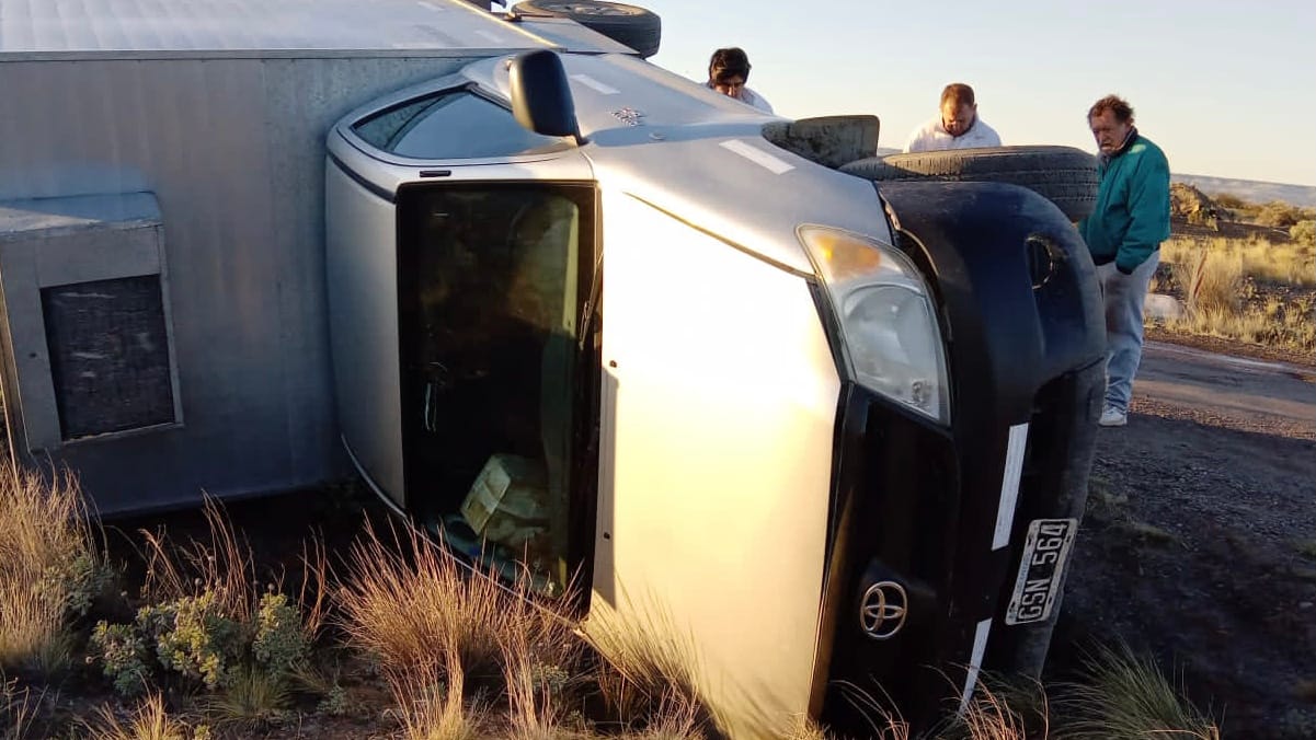 “El conductor de 39 años junto a un compañero trabaja de manera particular realizando el transporte de carnes con la térmica, y alude que no vio un desagüe que se encuentra antes de retomar la Ruta Nacional 25” señaló el comisario Pablo Gauna.