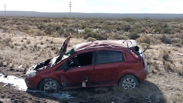 Un conductor perdió el control de su vehículo este domingo por la tarde sobre la Ruta Nacional N°25, a la altura del pórtico de acceso a la ciudad de Trelew.